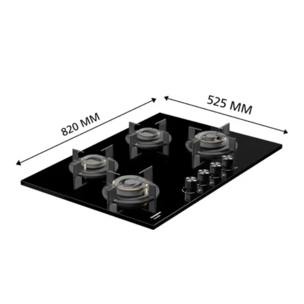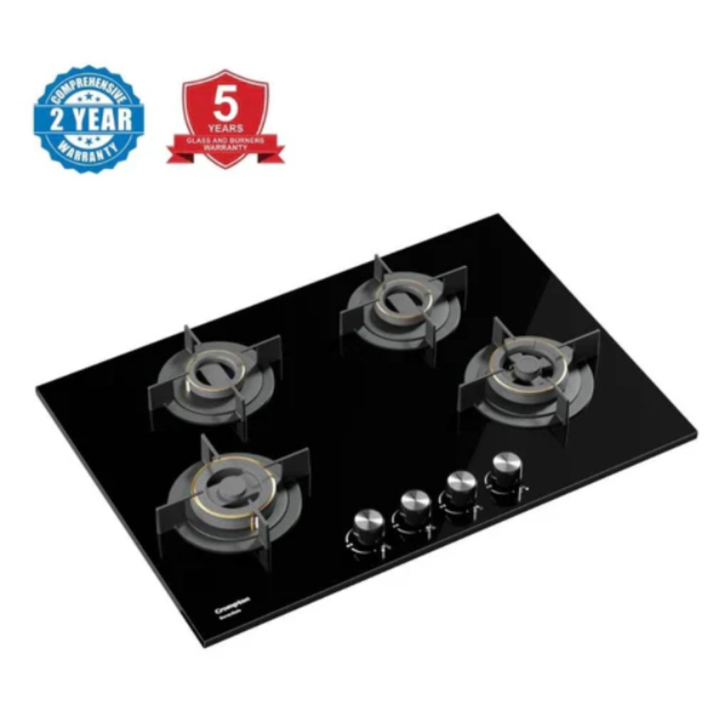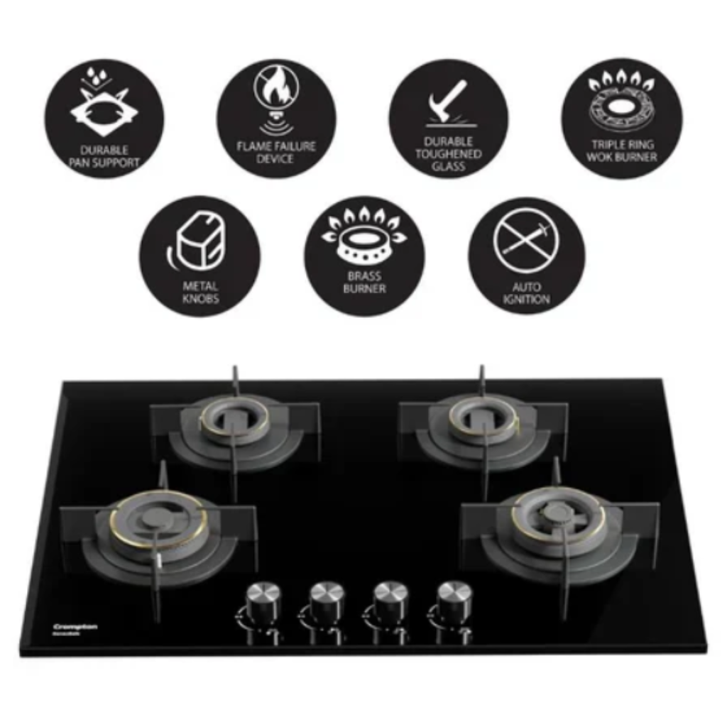 Crompton kitchen Hob, Senso Safe Series, Auto Ignition Half Brass Burners, HOB-SS3D784-MBL | 78cm | 4 Burners | 2 Years Comprehensive Warranty, 5 Years on Glass & Burners.