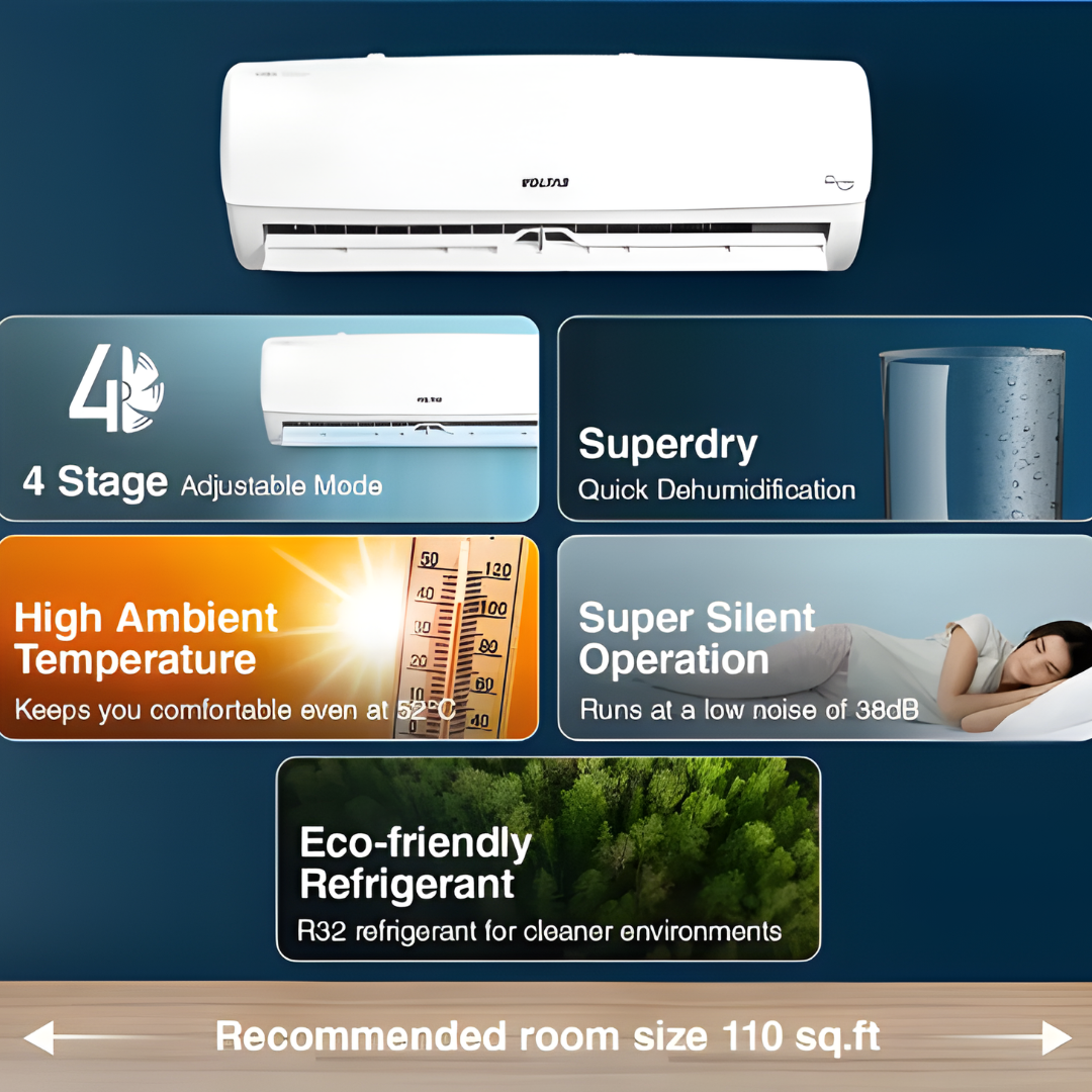 Special Features High Ambient Cooling | Superdry | Turbo Cooling | Anti-Microbial Air Filtration | Eco- Friendly Refrigerant | 100% Copper | Wide Voltage Range Operation.